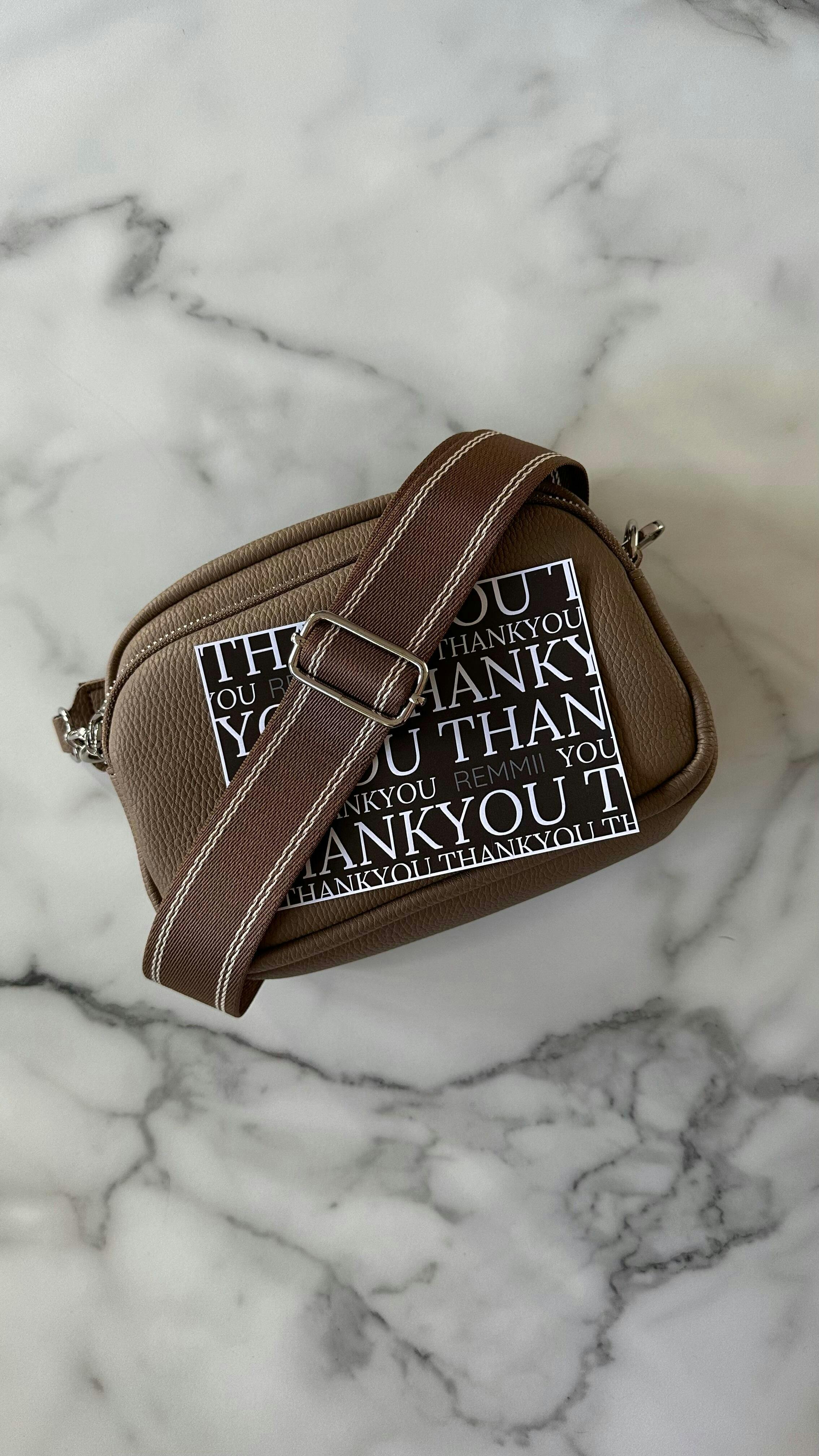 Remmii Riley Crossbody Baby Bag in Almond, Front View